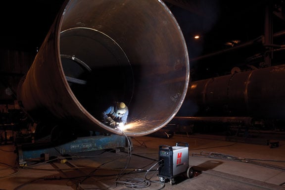 Because of its portability, productivity, performance, and ease of use, handheld plasma is the preferred cutting technology for mild steel, stainless steel, and aluminum across a wide range of industries and applications (including heavy equipment repair, structural steel, shipbuilding, DIY, etc..). Most handheld plasma systems consist of an inverter-based power supply (like most welders) that combines electricity and compressed (air as the plasma gas) to produce a plasma arc that is generated at the end of a hand torch. Handheld plasma systems require electricity either from a line or a generator and compressed air either from an air compressor or bottle.