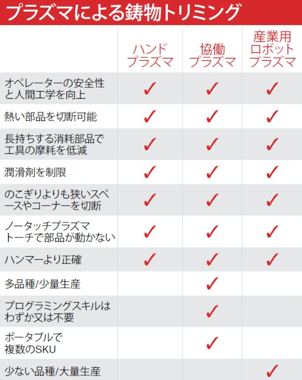 プラズマによる鋳物のトリミングを行うことで、作業場での負傷が減少