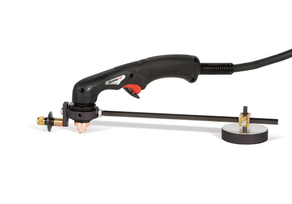 O conjunto básico de guias para corte circular a plasma permite uma instalação fácil e rápida, feita para cortes circulares precisos de até 70 cm de diâmetro. O conjunto básico vem com um suporte de capa da tocha giratório, duas rodas de metal e eixos ajustáveis, braço de 38 cm, pino central e suporte.