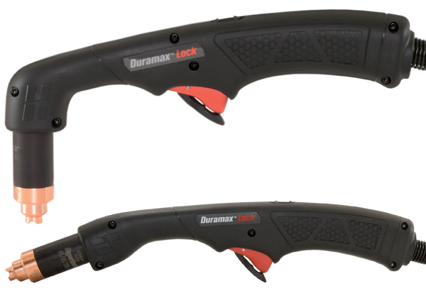 As tochas manuais de 75° e 15° Duramax® Lock são adequadas para uma variedade de aplicações, como goivagem, corte de formas complexas, corte de alcance estendido e corte rente. O design ergonômico da tocha de 75° é perfeito para o corte normal, enquanto que a tocha de 15° afasta o calor do operador durante a goivagem pesada e permite o corte acima da cabeça ou em áreas de difícil acesso.