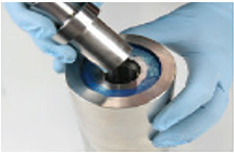 Acerte a ferramenta de impulso com um martelo de borracha para empurrar o segundo conjunto de aro e selo HP para fora do cilindro HP. afin de pousser le deuxième cercle et l’ensemble du joint HP hors du cylindre HP.