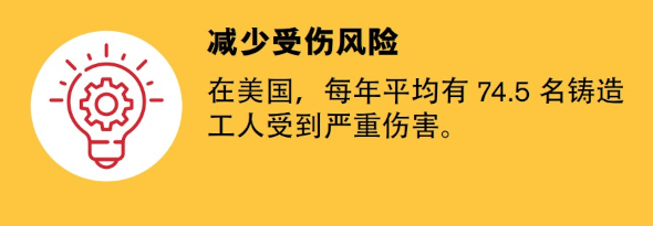 使用手动铸件修整/打浇口方法的行业当前面临着许多挑战,其中最紧迫的一项是不安全的工作环境。使用锤子、带锯、切割锯、切断磨轮和磨床进行手动铸件修整的话,这会导致工伤,包括呼吸道问题、割伤、烧伤和挤压伤。限制生产效率和产能的其他挑战包括零件的变异性和移动、有限的劳动力资源、劳动力老龄化,以及诸如零件损坏、零件上存在润滑油污染和地面空间等其他因素。