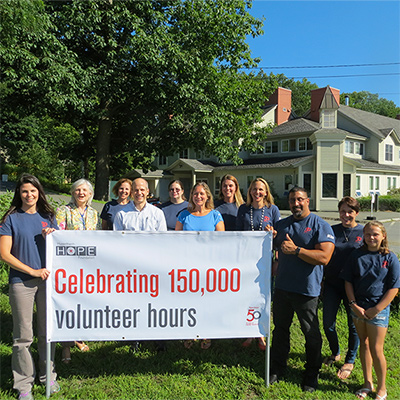 在公司成立 50 周年之际,海宝在由 Upper Valley Haven 运营的 Hixon House 庆祝社区服务时间达到 15 万小时